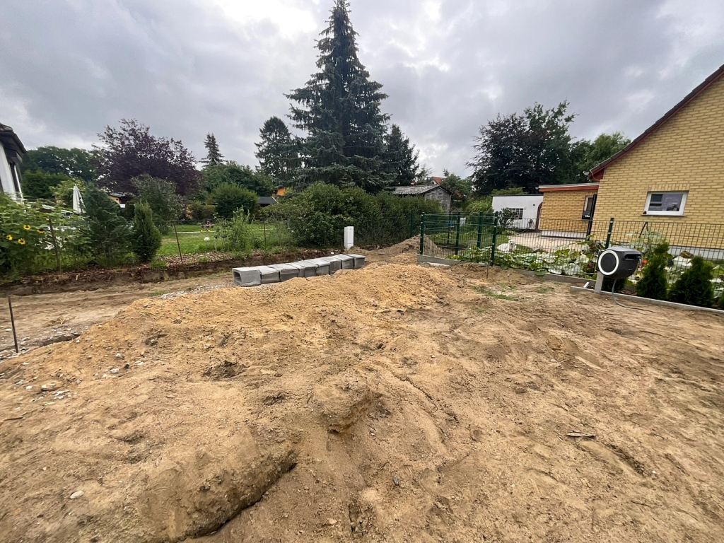 Um die Stabilität des Carports zu gewährleisten, wurden für die Stützen Punktfundamente mit einer ausreichenden Tiefe angelegt. Dies sorgte dafür, dass die gesamte Konstruktion auch bei starkem Wind oder Schneelasten sicher steht.